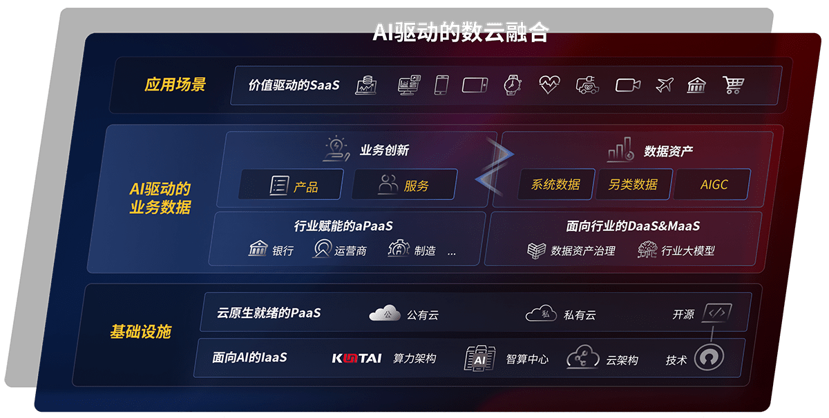以尊龙旗舰厅鲲泰全国产化计算产品帮助金融行业客户构筑数字底座;以丰富的AI和数云产品及方案,,,,保障数据安全,,,挖掘数据价值,,,,提升服务品质
